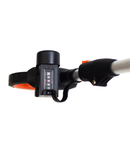 Przycisk kasujący umożliwiający zerowanie licznika znajduję się obok licznika, a hamulec ustalający wartość odległości zamontowany jest przy rękojeści.