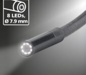 - Przewód inspekcyjny 5 m z kamerą o średnicy 7,9 mm umożliwia dotarcie do wąskich i trudno dostępnych miejsc.