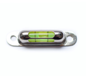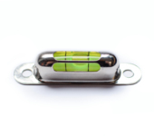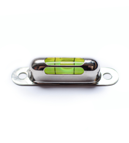 Podłużna libella w chromowanej metalowej obudowie do przykręcania z dwoma okienkami niemieckiej firmy RICHTER.