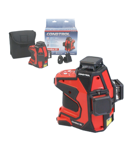 Multi-laser krzyżowy (3×360°) Condtrol OMNILINER 3D 3×360 z wiązką czerwoną, posiada trzy głowice lasera (2x pion,1x poziom), co pozwala na pracę z 3 płaszczyznami linii w zakresie 360° każda.