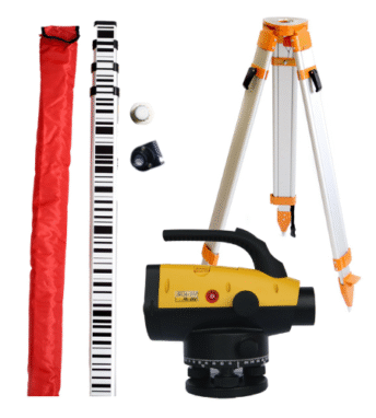 Pełen zestaw akcesoriów – niwelator, kufer, łata i statyw w jednym zestawie,