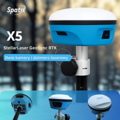 Spatix X5 to nowoczesny, laserowy odbiornik GNSS RTK z technologią AR Stakeout, który realnie zwiększa efektywność pracy w terenie. Łącząc precyzję, bezpieczeństwo i intuicyjną obsługę, wyznacza nowy standard w geodezji i budownictwie.