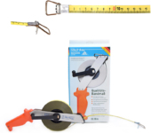 Taśma posiada ergonomiczny uchwyt z wysokiej jakości tworzywa, dzięki któremu pewnie trzyma się ją w rękach. Stalowa, składana korbka ułatwiająca szybkie zwijanie, konstrukcja nitowana, odporna na uderzenia. Ramka taśmy wykonana z lekkiego stopu aluminium.