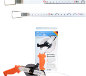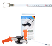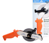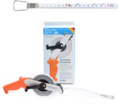 Taśma posiada ergonomiczny uchwyt z wysokiej jakości tworzywa, dzięki któremu pewnie trzyma się ją w rękach. Stalowa, składana korbka ułatwiająca szybkie zwijanie, konstrukcja nitowana, odporna na uderzenia. Ramka taśmy wykonana z lekkiego stopu aluminium.