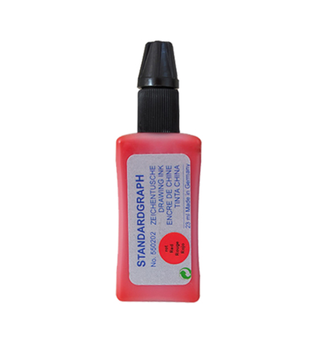 Tusz kreślarski niemieckiej firmy Standardgraph w kolorze czerwony (550202) o pojemności 23ml.